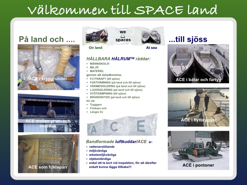 Hållbara HålrumTM utvecklas genom att outnyttjade utrymmen (hålrum) fylls med Bandformade luftkuddar/ACE (Aircushions for Sustainable airSPACES).